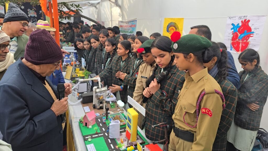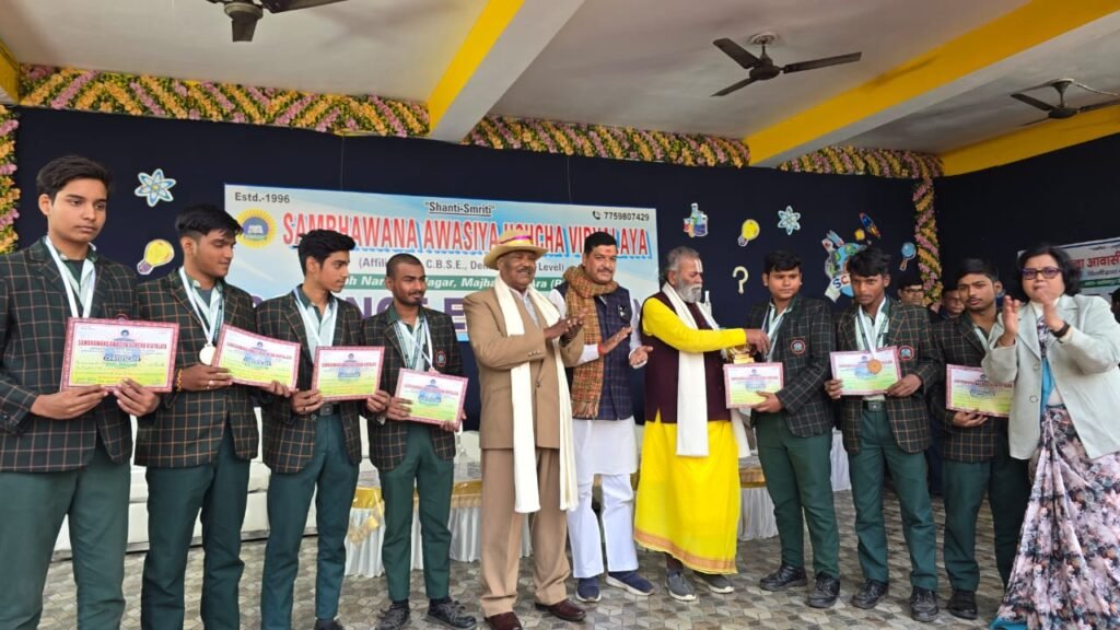 कार्यक्रम को सफल बनाने में उप-प्राचार्य ऋषिकेश ओझा, विज्ञान शिक्षक चंद्रकांत उपाध्याय, ब्रजेश तिवारी, एसके द्विवेदी, मिथिलेश सिंह, राजेश रमण, कला शिक्षक विष्णु शंकर, संजीव सिन्हा, संगीत शिक्षक धर्मेंद्र कुमार सिंह, अमितेश रंजन, दीपेश कुमार एवं महेश शर्मा का सराहनीय योगदान रहा। कार्यक्रम का समापन ‘वंदे मातरम’ से हुआ।….प्रदर्शनी में उत्कृष्ट प्रदर्शन करने वाले बच्चों को मेडल और प्रशस्ति-पत्र देकर किया गया सम्मानित फोटो-आरा। संभावना आवासीय उच्च विद्यालय में सोमवार को आयोजित विज्ञान प्रदर्शनी में बच्चों ने एक से बढ़कर एक मॉडल को प्रस्तुत किया। इस दौरान बच्चों ने हाइड्रोइलेक्ट्रिक, ग्लोबल वार्मिंग, स्मार्ट सिटी, विंड एनर्जी, ऑटोमेटिक डस्टबिन, एयर पॉल्यूशन कंट्रोलर सिस्टम, डिजास्टर मैनेजमेंट, वॉइस कंट्रोल कार, इलेक्ट्रिसिटी बाई वेस्ट मैटेरियल, विंड मिल, वाटर साइकिल, सोलर सिस्टम, सोलर पावर, वोल्केनो इरप्शन आदि पर आधारित मॉडल को प्रदर्शित किया। विज्ञान प्रदर्शनी में उत्कृष्ट मॉडल प्रस्तुत करने वाले बच्चों को प्रथम, द्वितीय एवं तृतीय पुरस्कार से सम्मानित किया गया। कार्यक्रम के दौरान विद्यालय के निदेशक डॉ. कुमार द्विजेंद्र, प्राचार्या डॉ. अर्चना सिंह एवं आगत अतिथियों ने बच्चों को मेडल एवं प्रशस्ति-पत्र देकर सम्मानित किया।