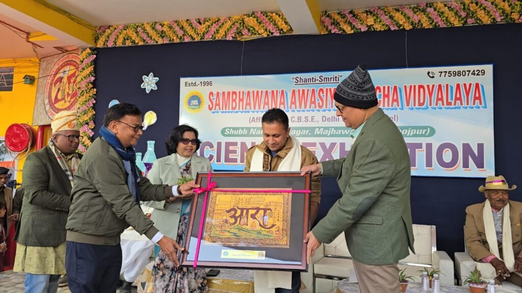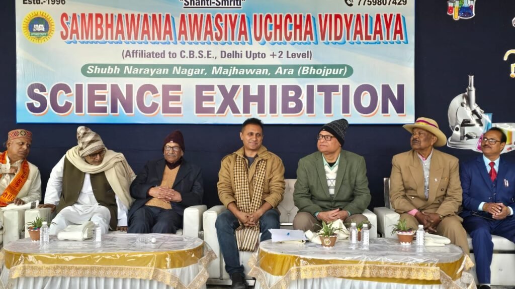 शहर के शुभ नारायण नगर मझौंवा स्थित ‘शान्ति स्मृति’ सम्भावना आवासीय उच्च विद्यालय परिसर में सोमवार को ‘विज्ञान प्रदर्शनी’ का आयोजन किया गया। उद्घाटन मुख्य अतिथि आनंद मिश्रा (पूर्व आईपीएस व बक्सर विधायक), विशिष्ट अतिथि आचार्य धर्मेन्द्र तिवारी (पूर्व कुलपति, वीकेएसयू), भाई ब्रम्हेश्वर (पूर्व महासचिव, बिहार राज्य नागरिक परिषद), प्रो. कन्हैया बहादुर सिन्हा (अध्यक्ष, बिहार राज्य विवि शिक्षक महासंघ), कर्नल राणा प्रताप सिंह, एम.एम. महिला कालेज के प्राचार्य डाॅ.नरेन्द्र कुमार पालित, राजेन्द्र सिंह परिहार (पूर्व प्रधानाध्यापक), विद्यालय के निदेशक डॉ. कुमार द्विजेंद्र एवं प्राचार्या अर्चना सिंह ने संयुक्त रूप से किया।