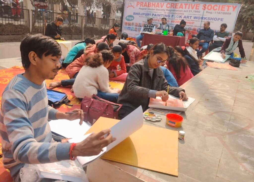 जय प्रकाश नारायण प्रतिमा स्थल पर प्रभाव क्रिएटिव सोसाइटी, महाजन टोली, आरा द्वारा आयोजित दो दिवसीय भोजपुरी चित्रकला प्रशिक्षण शिविर के आयोजन का समापन किया गया।