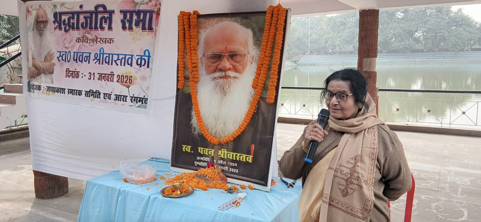 जे पी सेनानी, कवि, लेखक स्व• पवन श्रीवास्तव की पहली पुण्यतिथि पर श्रद्धांजलि सभा, जयप्रकाश मुक्त कला मंच, कलक्ट्री, तालाब,आरा पर जयप्रकाश स्मारक संस्थान और आरा रंगमंच के तरफ से आयोजित की गई। जिसकी अध्यक्षता प्रो• कमला कुमारी सिंह और संचालन अमरेंद्र कुमार ने किया।