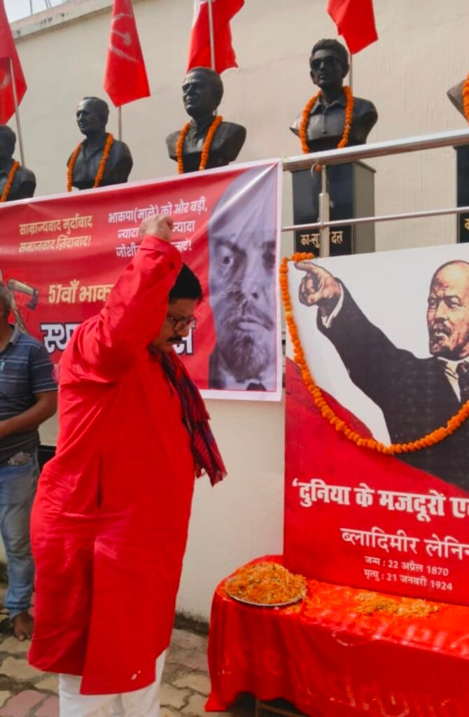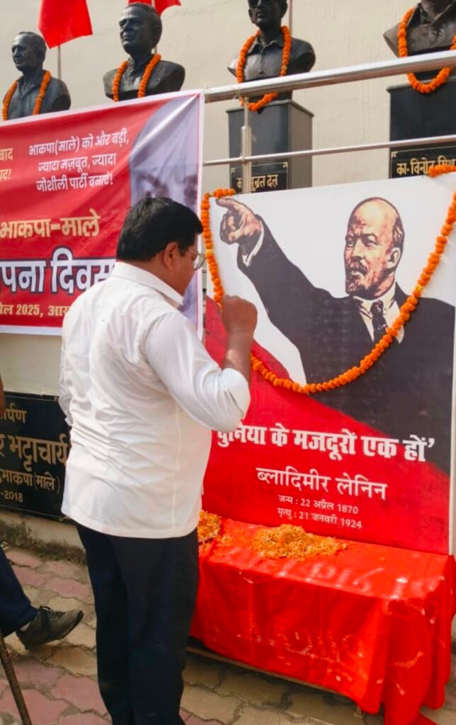 भाकपा-माले का स्थापना की 56वीं सालगिरह और का•लेनिन के जन्म की 155वीं सालगिरह पर क्रांति पार्क पूर्वी नवादा आरा कार्यक्रम आयोजित किया गया!इस दौरान सबसे पहले भाकपा-माले पोलित ब्यूरो सदस्य व पार्टी के वरिष्ठ नेता का•स्वदेश भट्टाचार्य ने झंडोंतोलन किया! उसके बाद का• लेनिन की तस्वीर पर माल्यार्पण कर सभी शहीदों को याद में दो मिनट का मौन रखकर श्रद्धांजलि दी गई!