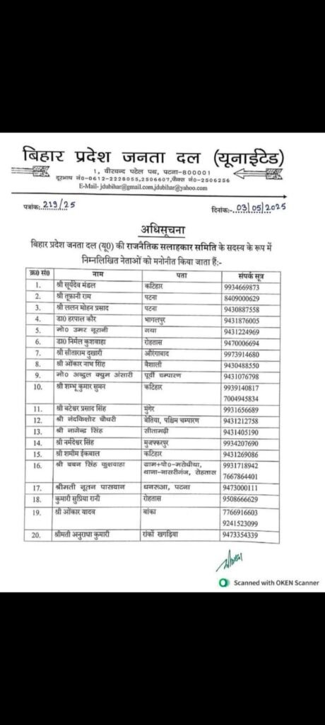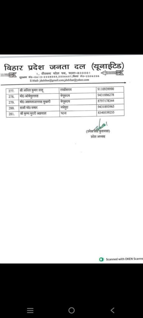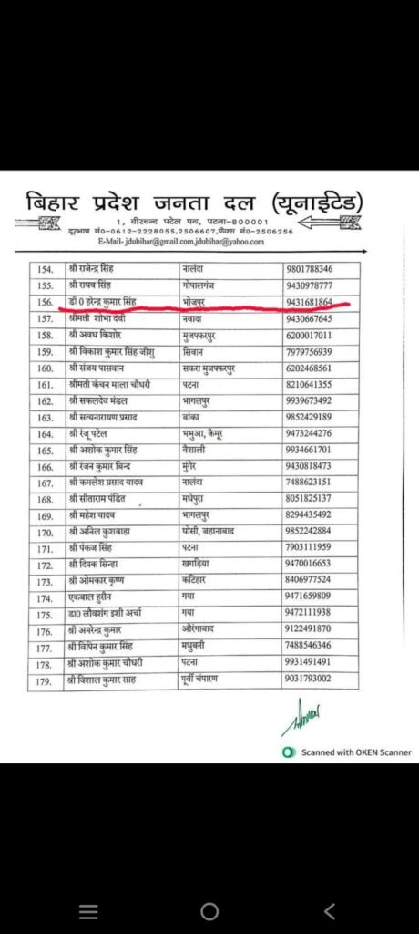 डॉ. हरेंद्र कुमार सिंह को प्रदेश सलाहकार समिति के सदस्य पुन: मनोनीत करने के लिए मुख्यमंत्री श्री नीतीश कुमार, राष्ट्रीय कार्यकारी अध्यक्ष श्री संजय झा, प्रदेश अध्यक्ष उमेश सिंह कुशवाहा, पूर्व प्रदेश अध्यक्ष वशिष्ठ नारायण सिंह, माननीय मंत्री विजेंद्र प्रसाद यादव, माननीय विधान पार्षद संजय कुमार सिंह उर्फ गांधी जी सहित प्रदेश एवं जिले के नेताओं को हार्दिक शुभकामना एवं बधाई देता हूं lसाथ ही साथ मनोनयन पर मुझे बधाई देने वाले जे.डी.यू नेता अभय विश्वास भट्ट, सुरेंद्र रजवार, ददन राम, रिंकू चौधरी, राम नरेश मेहता, बीरेंद्र यादव,प्रो अब्दुल कुदुश खान, प्रो. शिवा जी,आशुतोष रंजन इत्यादी लोगो को बहुत बहुत धन्यवाद |