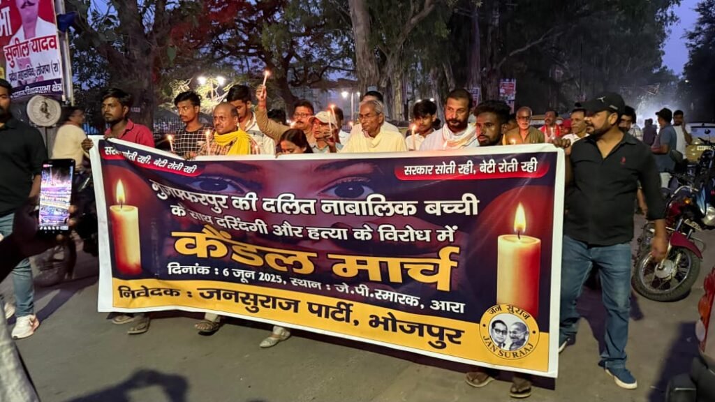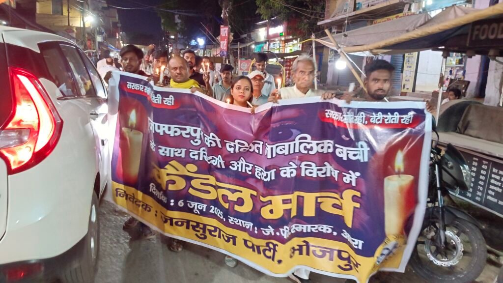 मुज़फ्फरपुर एवं हसन बाजार बालिका दुष्कर्म कांड के विरोध में जनसुराज पार्टी का कैंडल मार्च