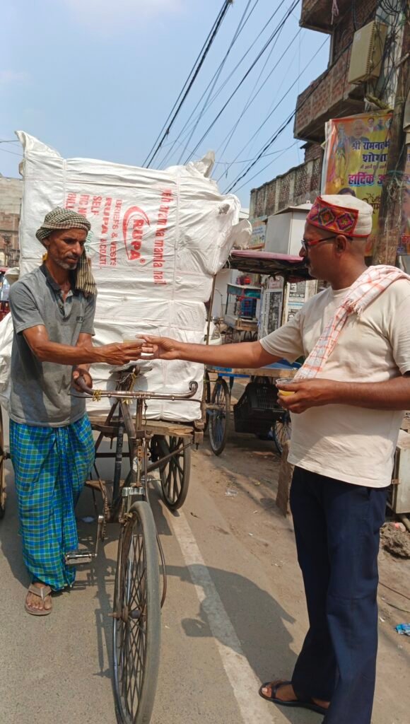 आरा रोटी बैंक चैरिटेबल ट्रस्ट के द्वारा आज लगातार चौथे दिन भी रिक्शा ठेला चालको सहित गर्मी में किसी भी कारण सड़क पर निकले राहगीरों को आमपन्ना पिलाया गया ।