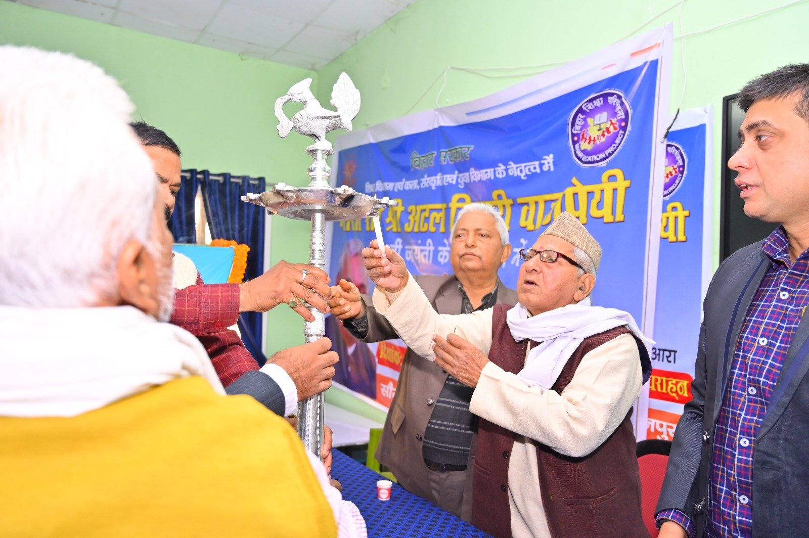 शिक्षा विभाग भोजपुर एवं और कला संस्कृति एवं युवा विभाग भोजपुर के संयुक्त समन्वय से आज दिनांक 25/11/2024 को भारत रत्न श्री विहारी वाजपेयी जी की 100वीं जयंती पर राजकीय कन्या +२ उच्च विद्यालय के सभागार में संगोष्ठी का आयोजन किया गया। जिसमें जिला कला एवं संस्कृति पदा० भोजपुर एवं जिला कार्यक्रम पदाधिकारी सर्वशिक्षा अभियान, (चंदन प्रभाकर) जी के द्वारा संयुक्त रूप से दीप प्रज्जवल कर संगोष्ठी का शुभारंभ किया गया। इस संगोष्ठि के मुख्य अतिथि वरिष्ठ अभिभावक प्रो डॉ नंद जी दुबे थे