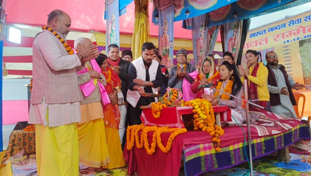 भागवत कथा सह भव्य रामलीला का हुआ शुभारंभ हनुमान मंदिर रमना आरा में जुट रहे सैकड़ो श्रद्धालु