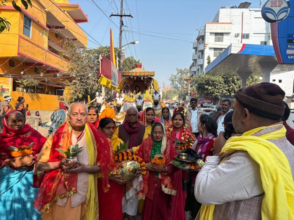 शुभारम्भ से पहले सैकड़ो भक्त कलश यात्रा सह शोभा यात्रा में शामिल हुए।